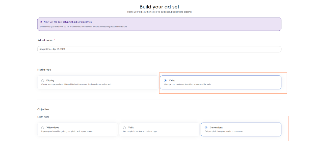 Control where your ads appear on web pages (top, middle, bottom). This is optional since conversion-focused campaigns rely more on audience quality than ad placement, but specifying premium positions can help if you have data showing certain placements generate higher conversion rates.