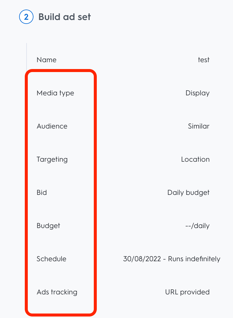 ステップ2:最初の広告セットを構成する