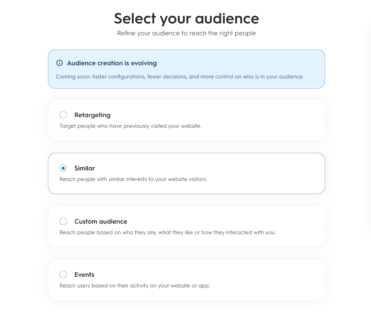 ウェブサイトの訪問者:最近お客様のウェブサイトにアクセスしたユーザーをターゲティングします。