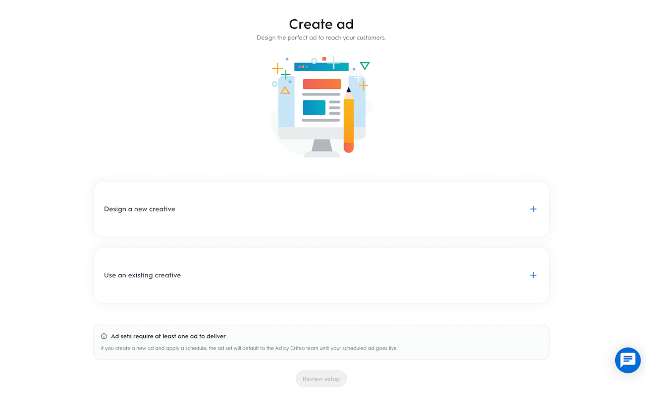 ゼロから作成するか、既存のものを再利用するか、Criteo にクリエイティブをアップロードすることができます。