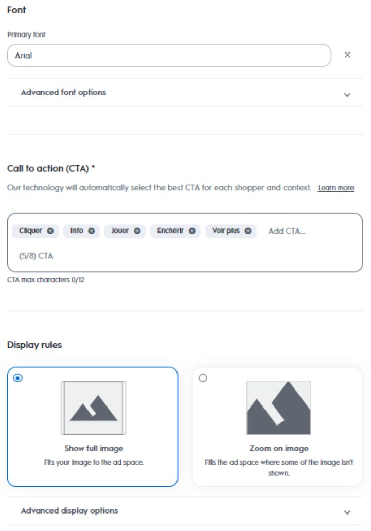 広告フォーマットによっては、使用できるレイアウト オプションが異なる場合があります。ディスプレイ広告やネイティブ広告を作成するかどうか、および配置オプションを選択する必要がある場合があります。
