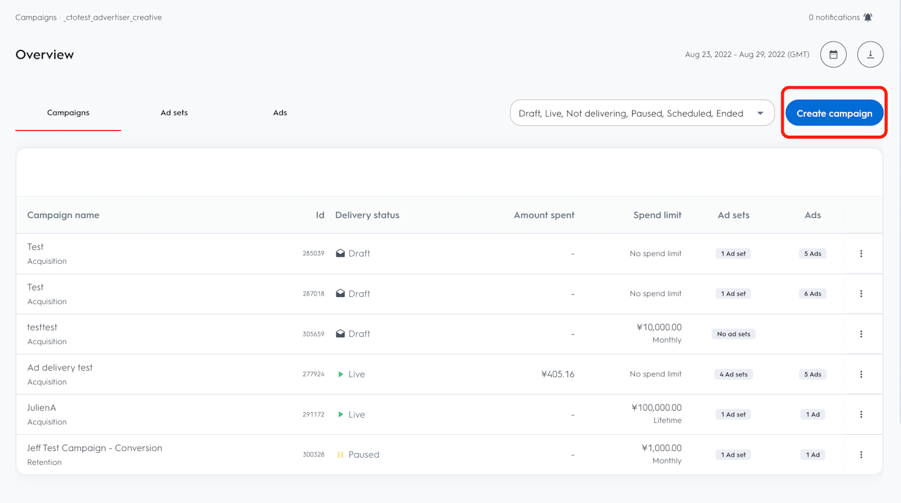 キャンペーンの作成