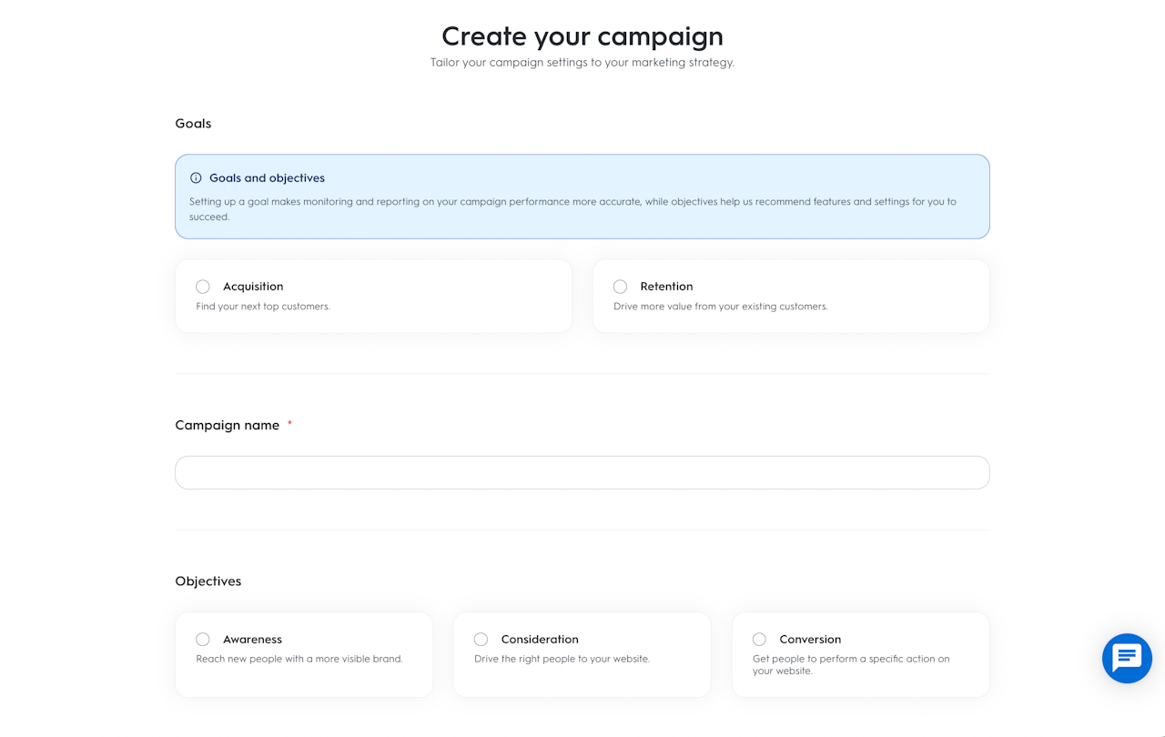 獲得:キャンペーンがより多くの顧客を獲得することを主な目的としている場合は、この目標を選択します。