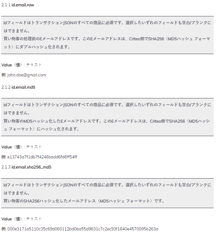 Criteoでは、識別子パラメータとしてハッシュ化されたEメールアドレスを使用しています。