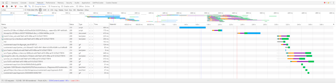 最初のトラッキングリクエストは、Criteoのリクエストが発生するとすぐに生成されます。OneTagによってトリガーされる可能性のある以降のすべてのリクエストは、ブラウザが画像、スクリプトファイル、CSSファイルなどのすべてのプライマリリソースをウェブサイトから正常にダウンロードした後でのみ行われます。