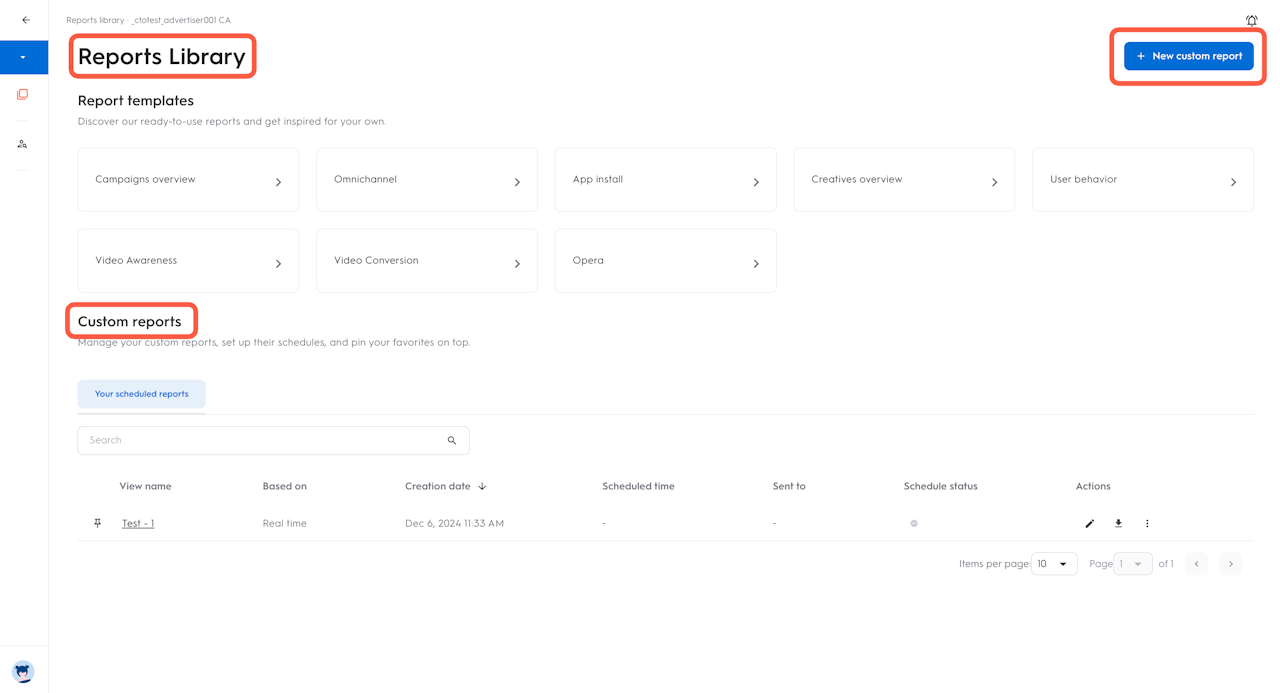 Você pode acessar “Relatórios personalizados” no módulo “Analytics” no Management Center. Na navegação, sob RELATÓRIOS, selecione “Biblioteca de relatórios”.