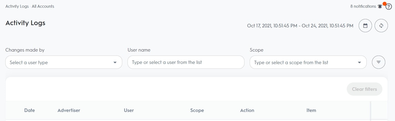 活动日志记录了与广告活动、广告组、预算、目录、广告安全以及跟踪相关的一切操作信息。 活动日志不包含Commerce Growth中用户管理方面的相关日志。 可用日志的列表将不断扩展。